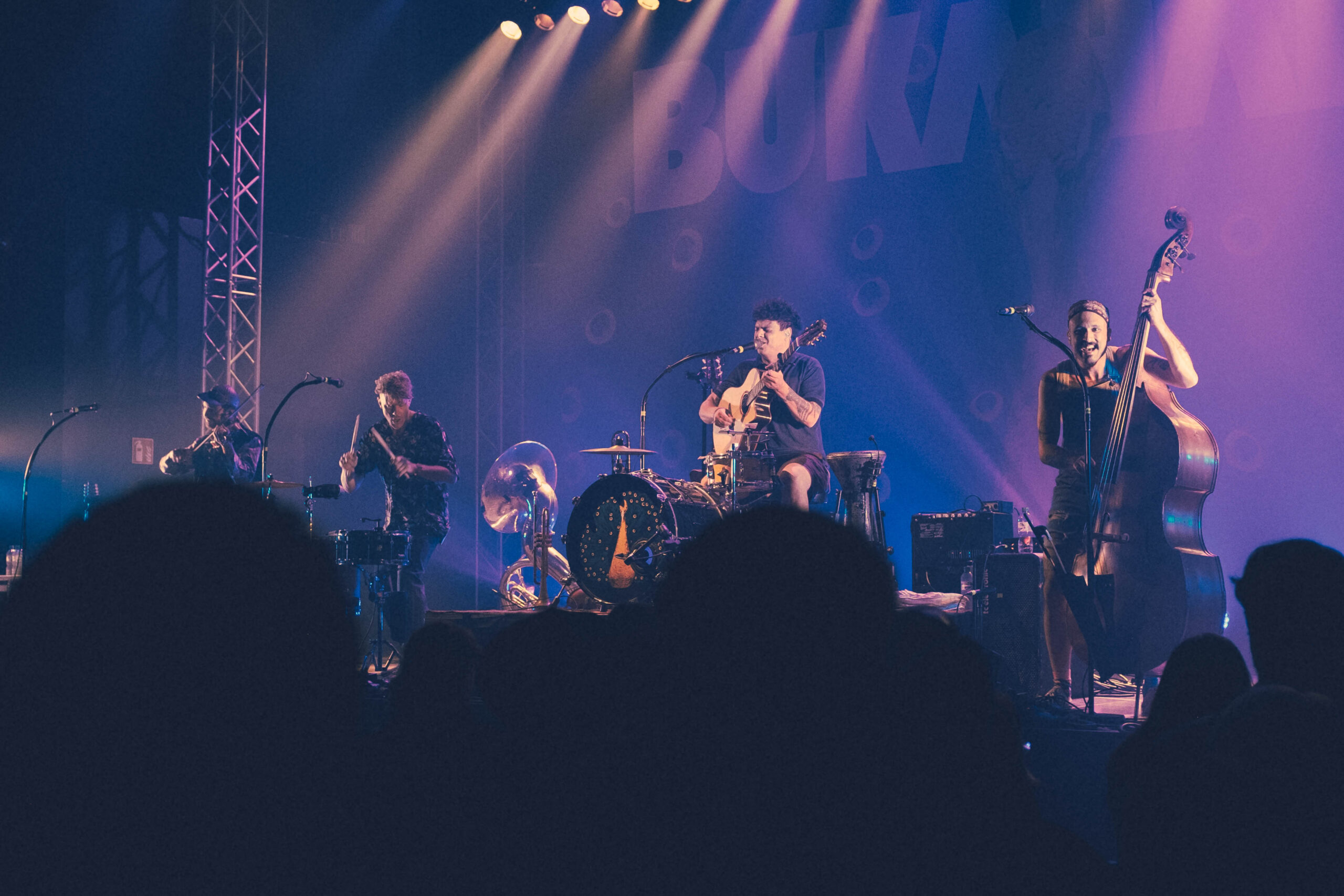 Da ich selbst das ein oder andere Instrument spiele oder zumindest versuche, war es umso beeindruckender, diese vier Multi-Instrumentalisten zu sehen, die durch Geige, Kontrabass, Schlagzeug, Trompete, Posaune, Sousaphon und andere Instrumente wechselten, als wäre nichts dabei.